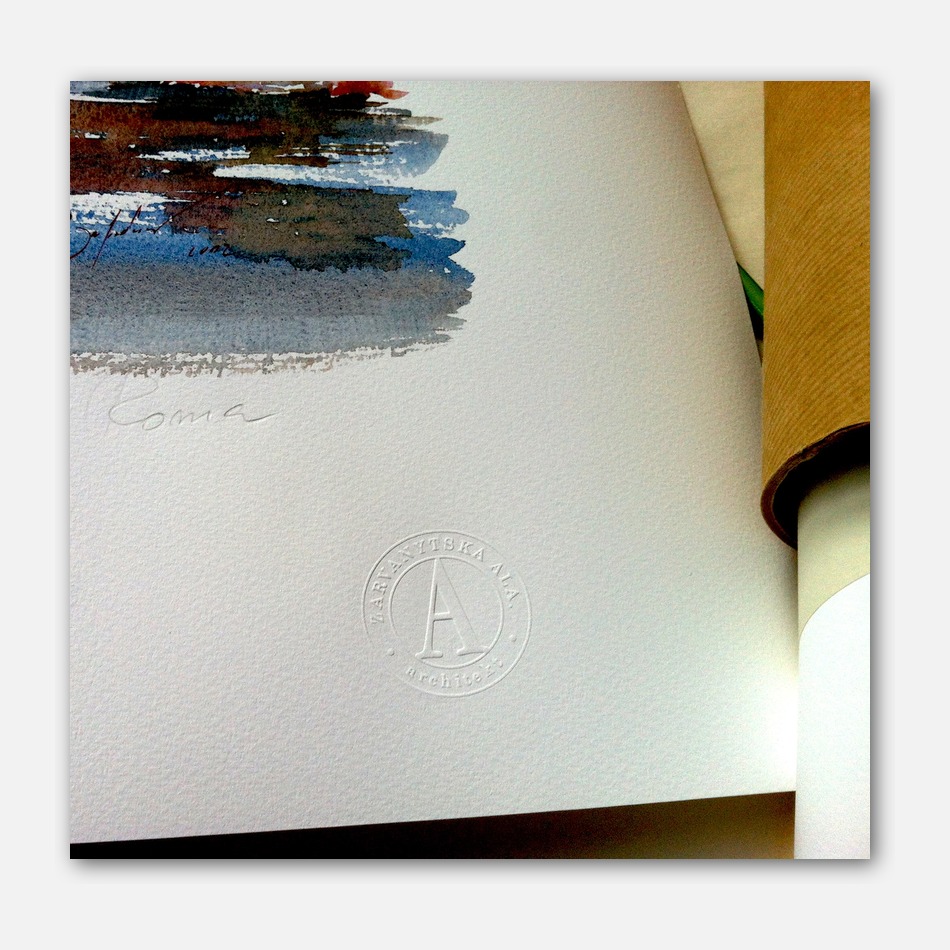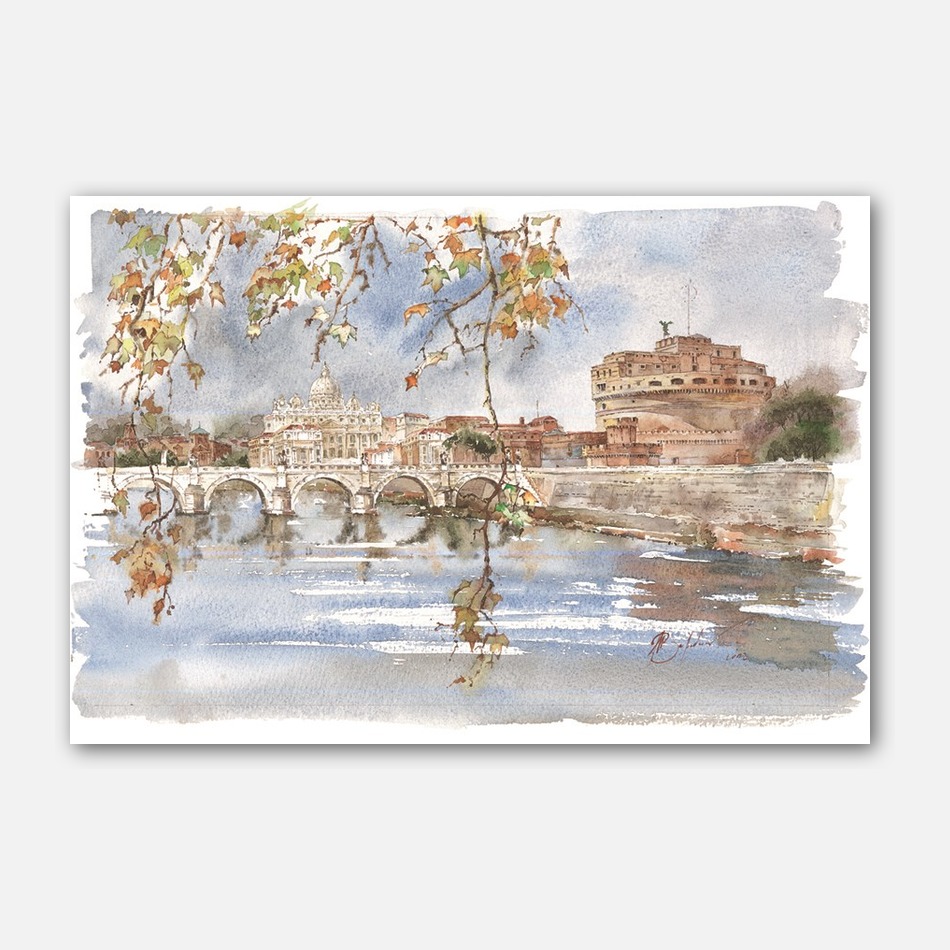 Stampato su carta somerset velvet, 340gr. Il disegno originale è scannerizzato ad alta definizione e poi stampato su carta di alta qualità, per una riproduzione quanto più simile all’originale.Ogni stampa è firmata e numerata dall’artista.Il prezzo ammonta a 35 euri più spedizione (Italia-9 euro, Europa-25 euro, Oltre Oceano 45 euro. Misure:40x26cm. L’immagine ha un bordo di 10cm sulla base superiore e ai lati e uno di 12cm sulla base inferiore.Acquerello originale realizzato nel 2002 (venduto), 34x22cm.