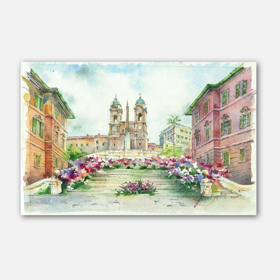 Blocchetto Memo con in copertina immagine dell’acquerello di Piazza di Spagna, Roma