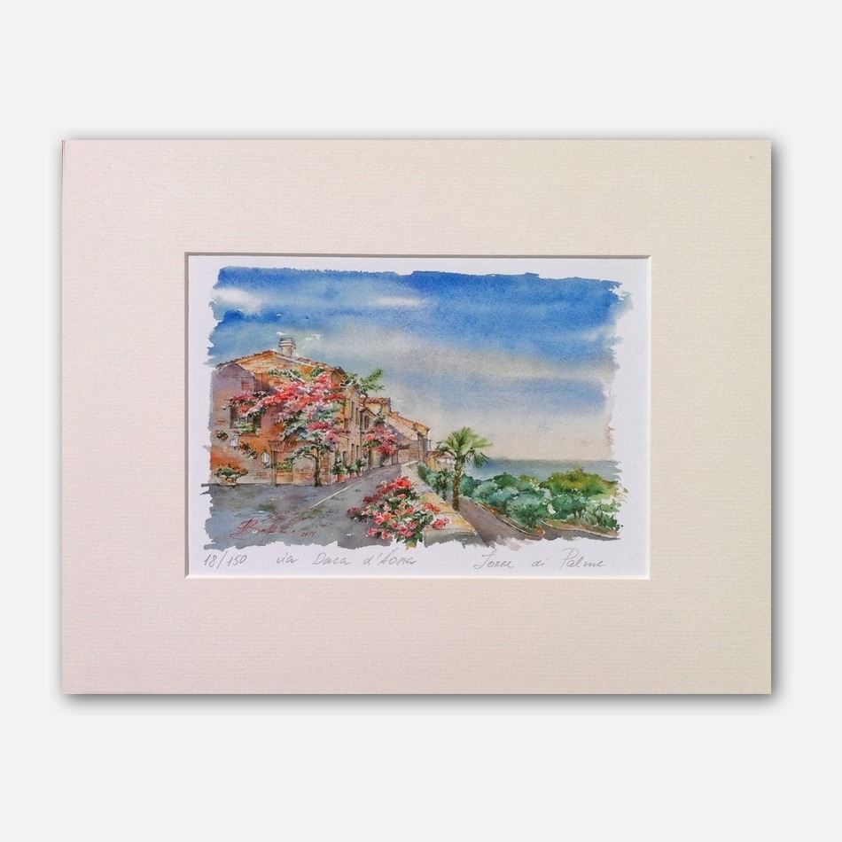 Stampe edizione limitata su carta museale Cotton Rag. Il dipinto originale viene scansionato in alta definizione e poi stampato su carta di alta qualità, per una riproduzione quanto più simile all’originale.Misure dei quadri : piccolo 15×10 (immagine) 25×20 con passepartout, medio 16×23 (immagine) 28×36 passepartout. Acquerello originale realizzato nel 2002, 34×24